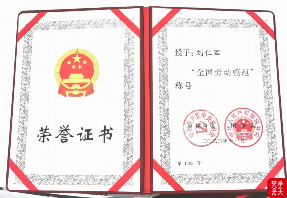 劉仁軍的榮譽(yù)證書(shū)