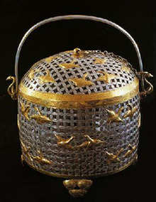 金銀絲結(jié)條籠子——唐用于炙烤茶餅
