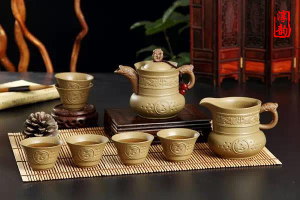陶器中的佼佼者首推宜興紫砂茶具,早在北宋初期就已崛起,成為別樹一幟的優(yōu)秀茶具,明代大為流行。紫砂壺和一般的陶器不同,其里外都不敷釉,采用當(dāng)?shù)氐淖夏?、紅泥、團(tuán)山泥摶制焙燒而成。