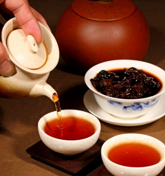普洱茶(熟茶),是以符合產(chǎn)地條件的云南大葉種曬青茶為原料,采用渥堆工藝,經(jīng)后發(fā)酵(人為加水提溫促進細菌繁殖,加速茶葉熟化去除生茶苦澀,以達到入口純和湯色紅濃之獨特品性)加工形成的散茶和緊壓茶。其品質(zhì)特征為:湯色紅濃明亮,香氣獨特陳香,滋味醇厚回甘,葉底紅褐均勻。