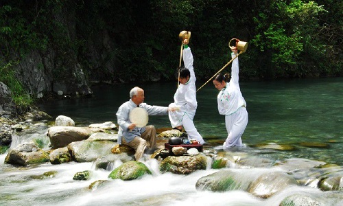還有一些高雅的茶藝表演,是蒙頂山“禪茶”中所獨創(chuàng)的十八道獻(xiàn)茶技藝。相傳“龍行十八式”茶技是北宋高僧禪惠大師在蒙頂山結(jié)廬清修時所創(chuàng)。過去作為僧人修行的一門功課,“龍行十八式”茶藝只在蒙頂山僧人中流傳,直到清代才逐漸傳入民間。創(chuàng)下融茶道、武術(shù)、舞蹈、禪學(xué)、易理為一體的茶技-蒙頂派“龍行十八式”。佛教文化和茶文化的水乳交融,更奠定了蒙山作為世界茶文化圣山的至尊地位。