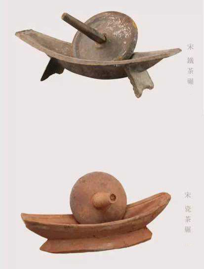 宋代采用的是點(diǎn)茶法,茶碾碎后放在盞中用沸水沖著喝,因此對(duì)茶末的精細(xì)程度要求更高,對(duì)茶碾的要求自然也隨即提高。宋代時(shí)金屬制的船型茶碾便更受歡迎,因?yàn)檫@種材質(zhì)和造型的茶碾碾壓后的茶末更加的精細(xì),茶末和水能夠更加充分的融合。