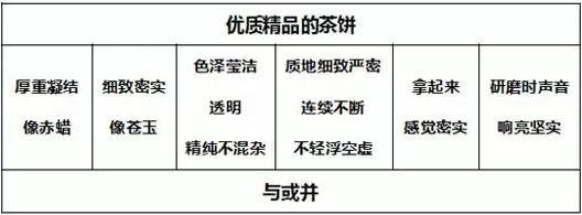 有的茶餅表面光彩而內(nèi)在灰暗,也有的茶餅內(nèi)里實(shí)在潔凈而外表質(zhì)樸。茶餅外表如同人的容貌各不相同,很難一概而論??偠灾?,色澤瑩潔透明并且顏色不混雜,質(zhì)地細(xì)致嚴(yán)密而不輕浮,拿起來感覺密實(shí),碾碎時(shí)聲音清亮,這些都可以表明是精品好茶。茶葉的鑒別,有的可以通過具體的言語(yǔ)和意旨來表達(dá),有的只能心中領(lǐng)會(huì)了。